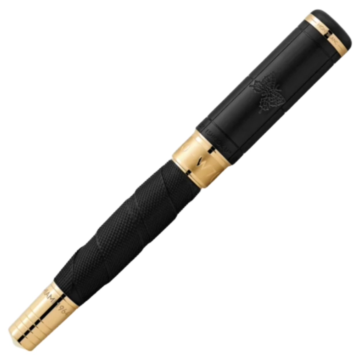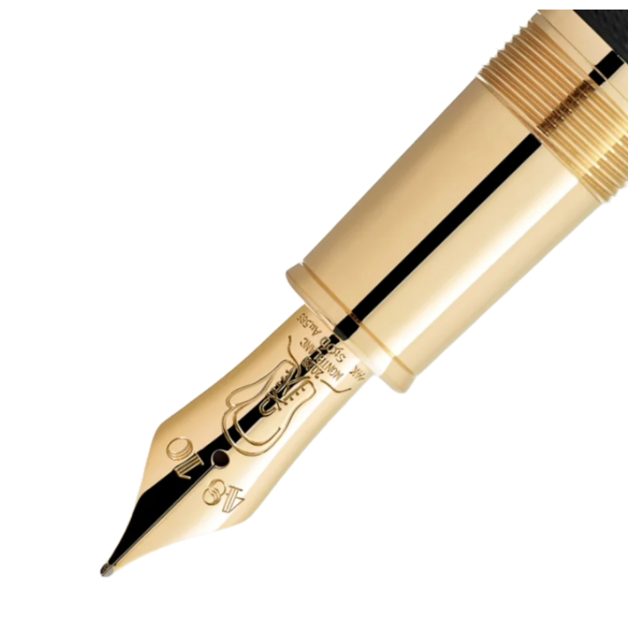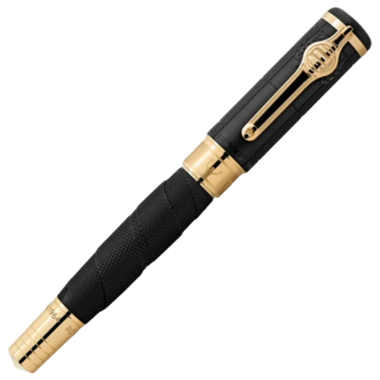 Slechts weinig atleten worden gevierd en geëerd als drievoudig wereldkampioen zwaargewicht, Muhammad Ali, wiens legendarische momenten op het gebied van sport en burgerrechtenactivisme hem tot een van de meest invloedrijke atleten en humanitairen van de 20e eeuw maakten. Als atleet schudde Ali de wereld op met zijn kracht, vaardigheid en persoonlijkheid en werd hij op slechts 22-jarige leeftijd wereldkampioen zwaargewicht. Zijn grootste triomf was echter het resultaat van zijn humanitaire inspanningen. De dop is gemaakt van kostbare zwarte hars en lijkt op een bokszak, terwijl de loop lijkt op bokstape die atleten gebruiken om hun handen te wikkelen. De pet is voorzien van diverse designelementen, zoals een bekende uitroep van Ali en een vlinder geïnspireerd op deze typische vechtstijl: Zweven als een vlinder, steken als een bij. De puntige kegel neemt dat idee over en is gegraveerd met vier lijnen die de touwen van een boksring voorstellen. De inscripties op de kegel verwijzen naar Ali's overwinning op de Olympische Spelen van 1960 in Rome en zijn eerste wereldkampioenschap zwaargewicht dat hij in 1964 in Miami won. De details van zijn overwinning, namelijk het winnen in de zevende ronde door technische knock-out, vindt u op de dopring. Om zijn eerste titel te vieren, is het Montblanc-embleem in witte hars versierd met een 1 . Om dit succes te onderstrepen heeft de clip de vorm van een bokskampioenschapsriem en draagt hij zijn naam. De handgemaakte massief Au 585 geelgouden penpunt toont een bokshandschoen.