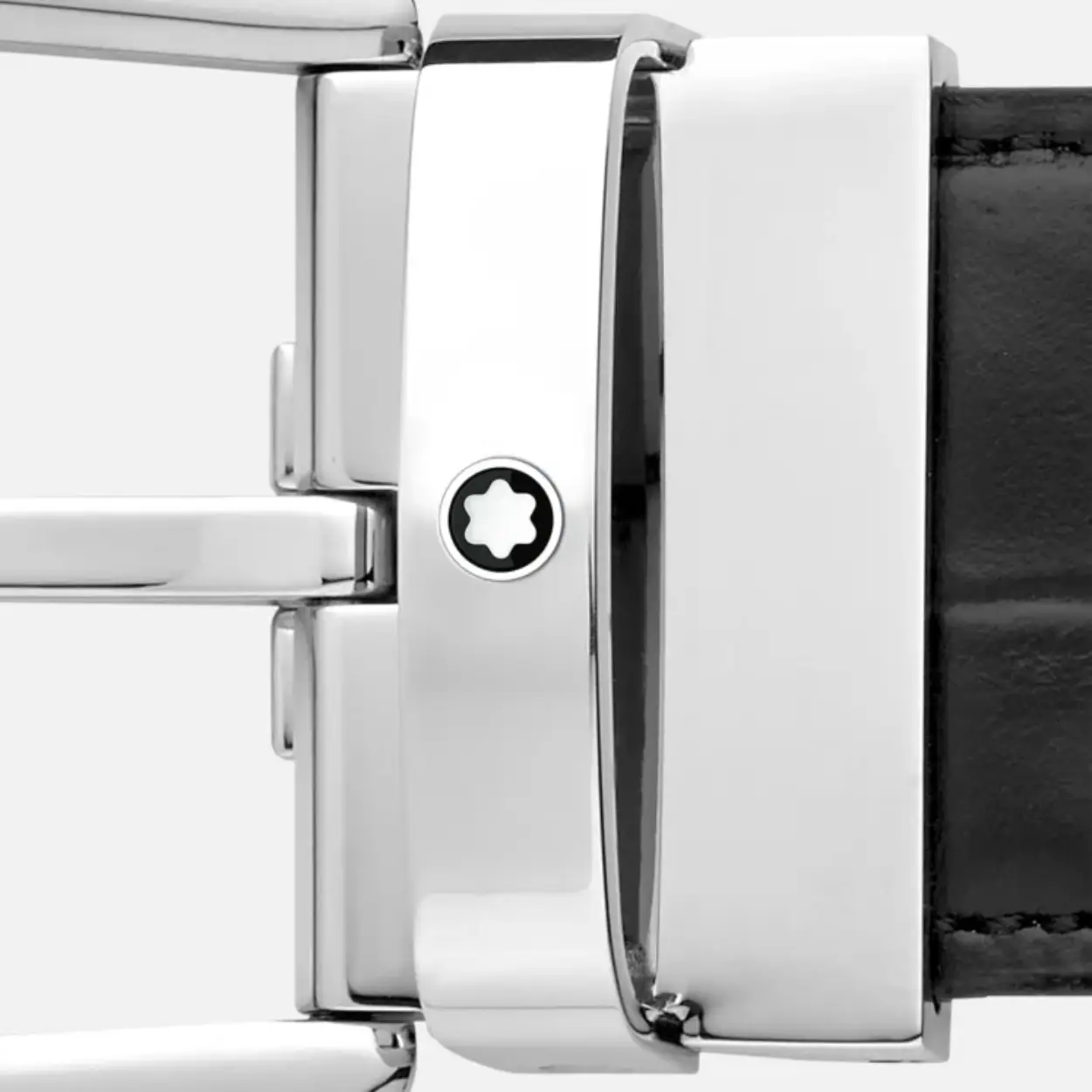 Hoefijzer roestvrijstalen gesp met decoratief embleem aan de zijkanten. Zelfverstelbaar, 3,5 cm x 120 cm. Een accessoire dat traditionele elementen combineert met een moderne stijl.