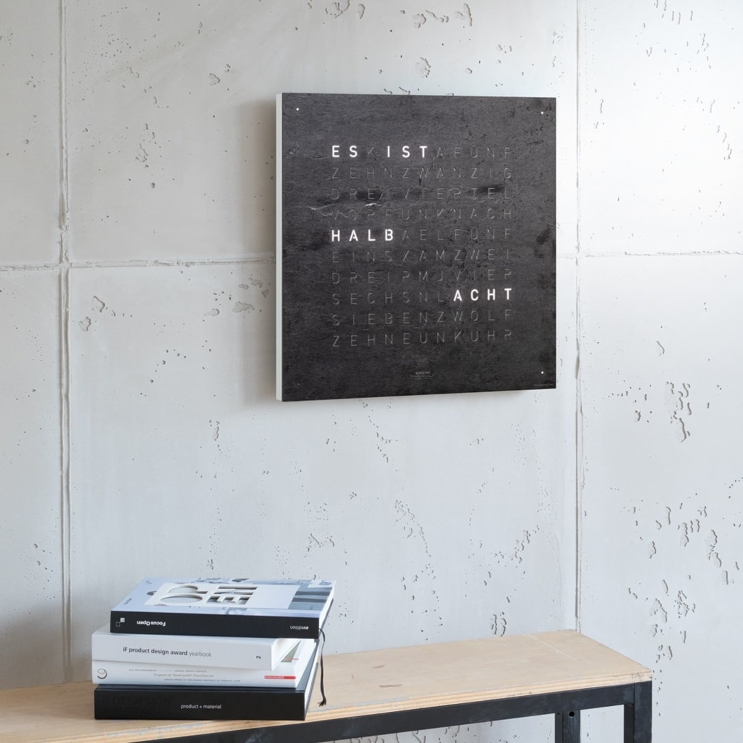 De Qlocktwo klok van Marco Biegert en Andreas Funk is een adembenemend mooie klok waarbij de tijd in woorden wordt weergegeven op het display. Nadat de Qlocktwo eenmaal opgemerkt is lijkt het onmogelijk om het oog er van af te houden. De weergave van de tijd verandert iedere vijf minuten terwijl de tussenliggende minuten met kleine lichtpuntjes op de hoeken worden aangegeven. Met de gratis app 'Flashsetter' van Biegert & Funk kan de tijd via uw smartphone eenvoudig op de seconde nauwkeurig naar de QLocktwo Classic worden overgedragen.