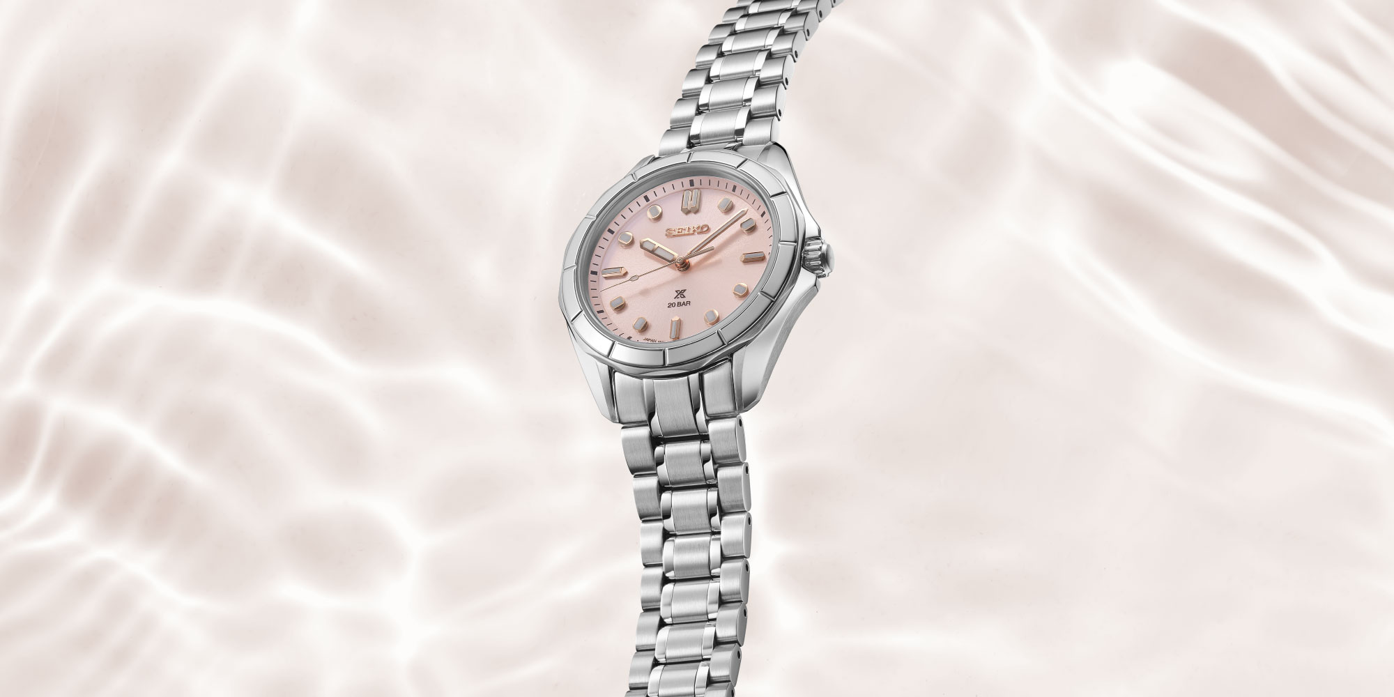 Dit Seiko Prospex horloge is uitgerust met een quartz uurwerk. Het horloge heeft een stalen kast en band en een diameter van 34mm. De roze wijzerplaat is voorzien van rosegoudkleurige wijzers en indexen die zijn afgewerkt met superluminova.