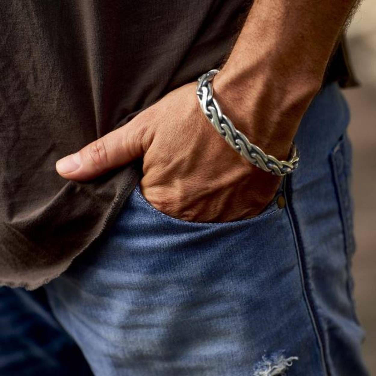 Deze handgemaakte zilveren armband uit de Breeze collectie is een stoere armband die alleen, maar ook gecombineerd met andere armbanden gedragen kan worden.