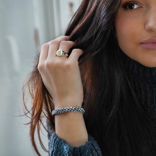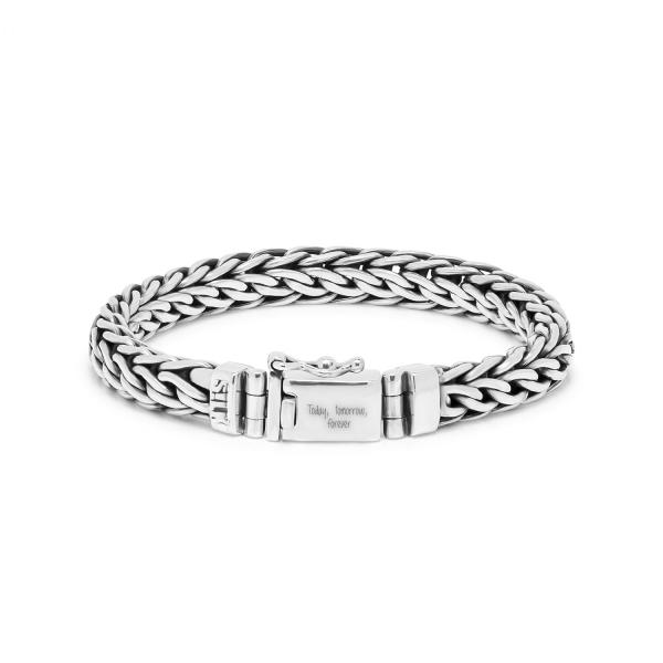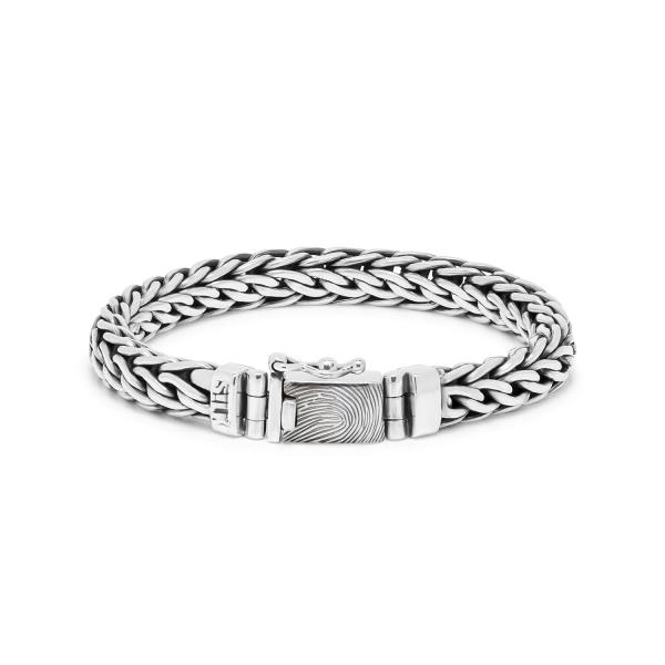 Zilveren handgemaakte armband, een echt statement piece. Deze robuuste armband is mooi open gevlochten en is afgewerkt met het bekende stevige SILK bakslot. Het slot van deze armband leent zich goed om te personaliseren met bijvoorbeeld jouw initialen, of speciale tekst naar keuze. Ook is deze armband heel erg geschikt voor het plaatsen van een mooie vingerafdruk.