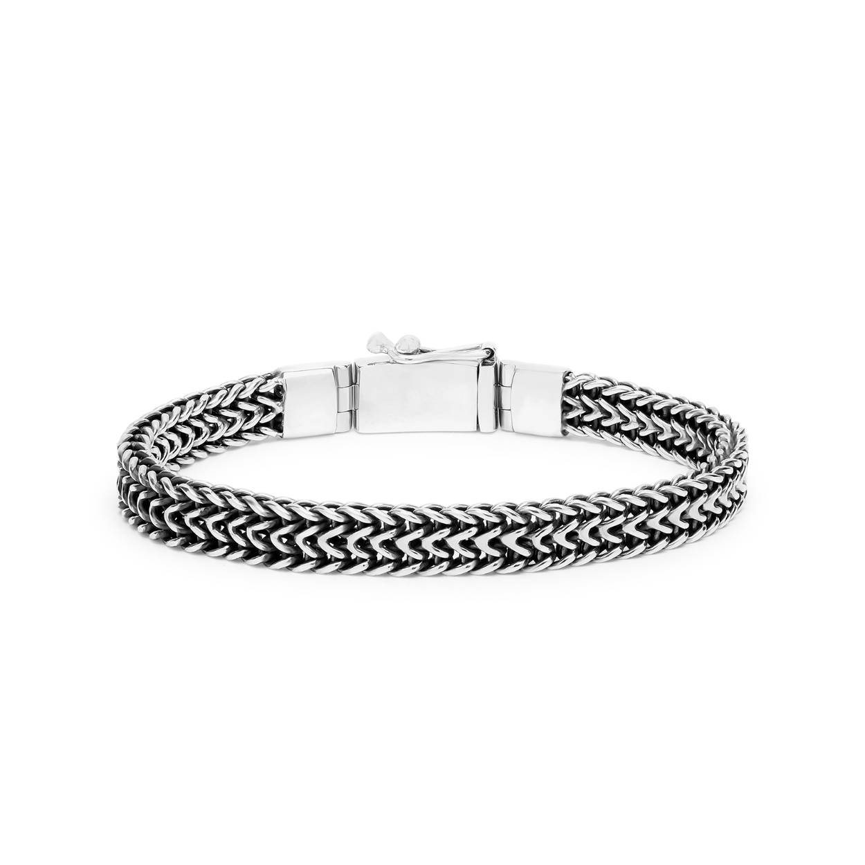 De zilveren 772 Armband Eighty-Eight valt soepel en mooi plat op de pols. De schakels van de armband zijn aan vier kanten afgevlakt waardoor er een vierkant effect ontstaat. Deze armband is van binnen geoxideerd en krijgt daardoor een mooie donkere gloed van binnenuit.