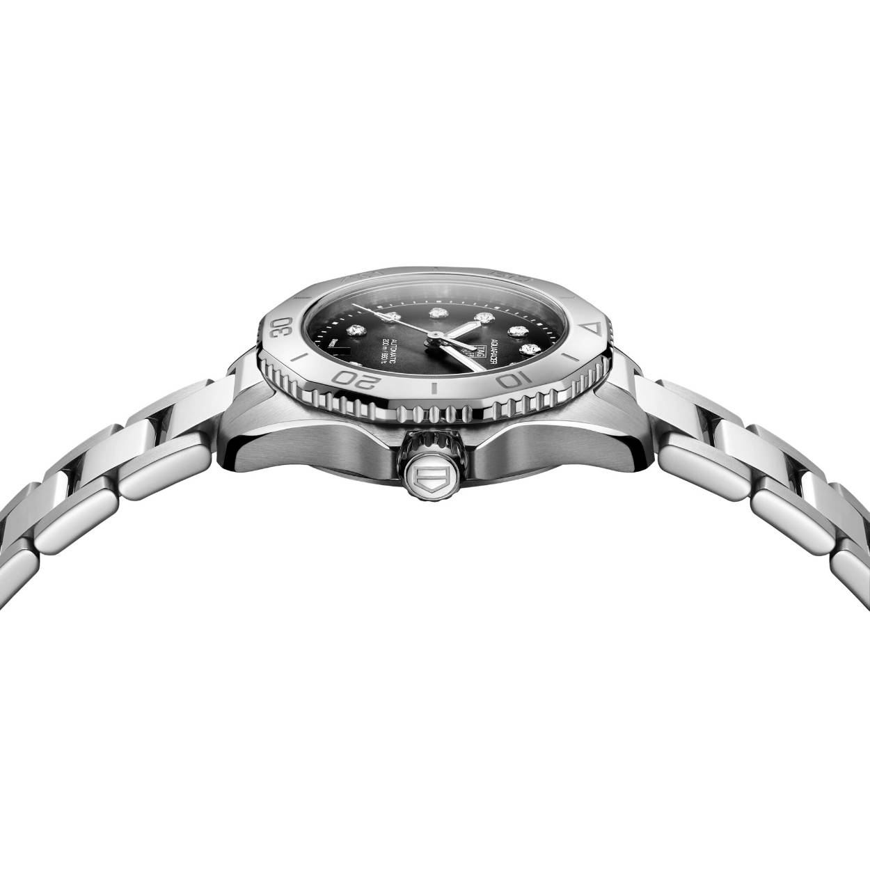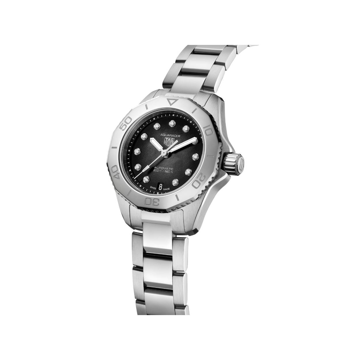De TAG Heuer Aquaracer Professional 200 Date is voorzien van een automatisch calibre 9 uurwerk met een gangreserve van 40 uur. De kast is gemaakt van edelstaal. Het horloge heeft een diameter van 30 mm en is getest op een waterdichtheid van 20 ATM / 200 meter. De horlogeband is gemaakt van edelstaal. De wijzerplaat is versierd met 11 VS Top Wesselton diamanten.