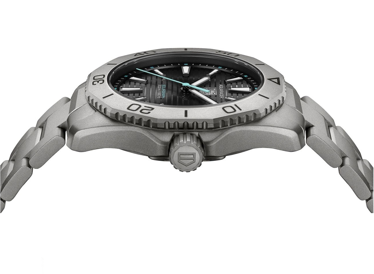 Deze 40 mm TAG Heuer Aquaracer Professional 200 integreert de Solargraph technologie, een uurwerk op zonne-energie, en presenteert een licht, taps toelopend ontwerp met heavy duty titanium klasse 2 om maximale robuustheid en veelzijdigheid in extreme omstandigheden te garanderen. De perfecte metgezel voor alle sport- en natuurliefhebbers.