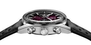 Til uw stijl naar een hoger niveau met de TAG Heuer Carrera Chronograph, waar geavanceerd design en levendige kleuren samenkomen. De smokey purple sunray-geborstelde wijzerplaat voegt diepte en verfijning toe. Contrasterende zwarte subdials tillen het opvallende ontwerp verder naar een hoger niveau.