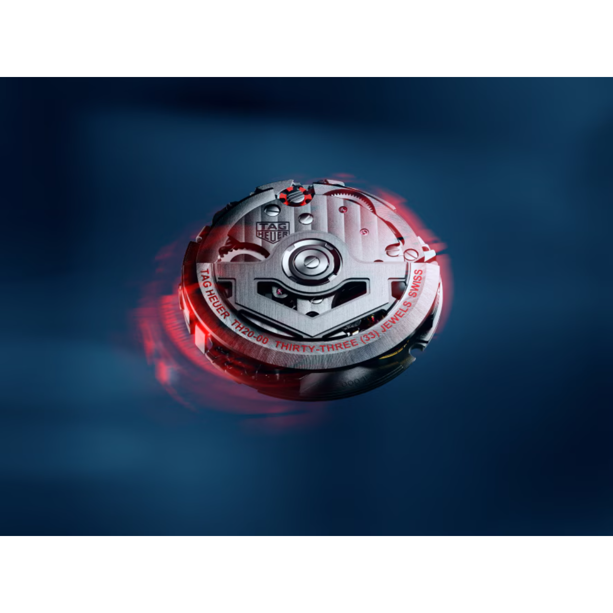 Afgestemd op het ritme van het circuit, brengt het TH20-00 automatische uurwerk, met zijn NAC-afwerking en gekleurde highlights, kracht waar het telt.