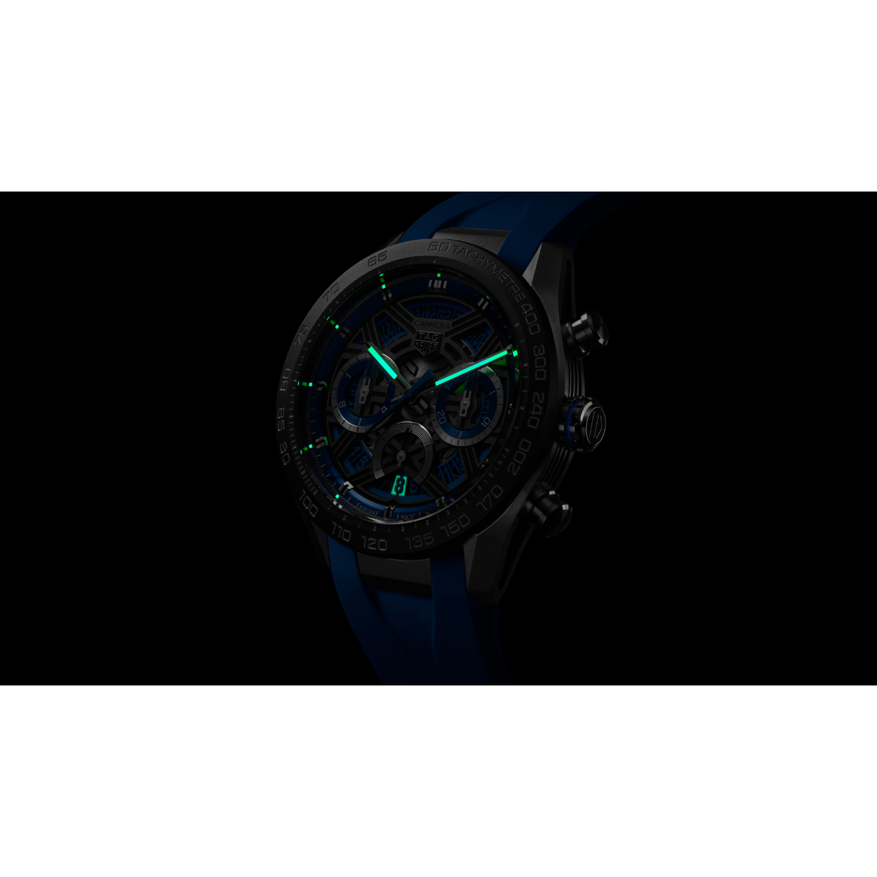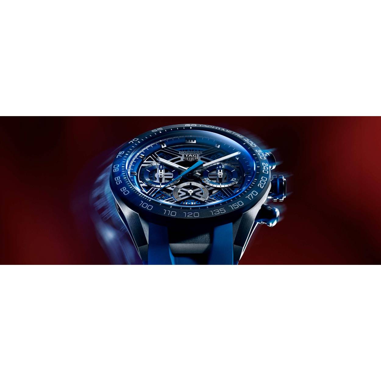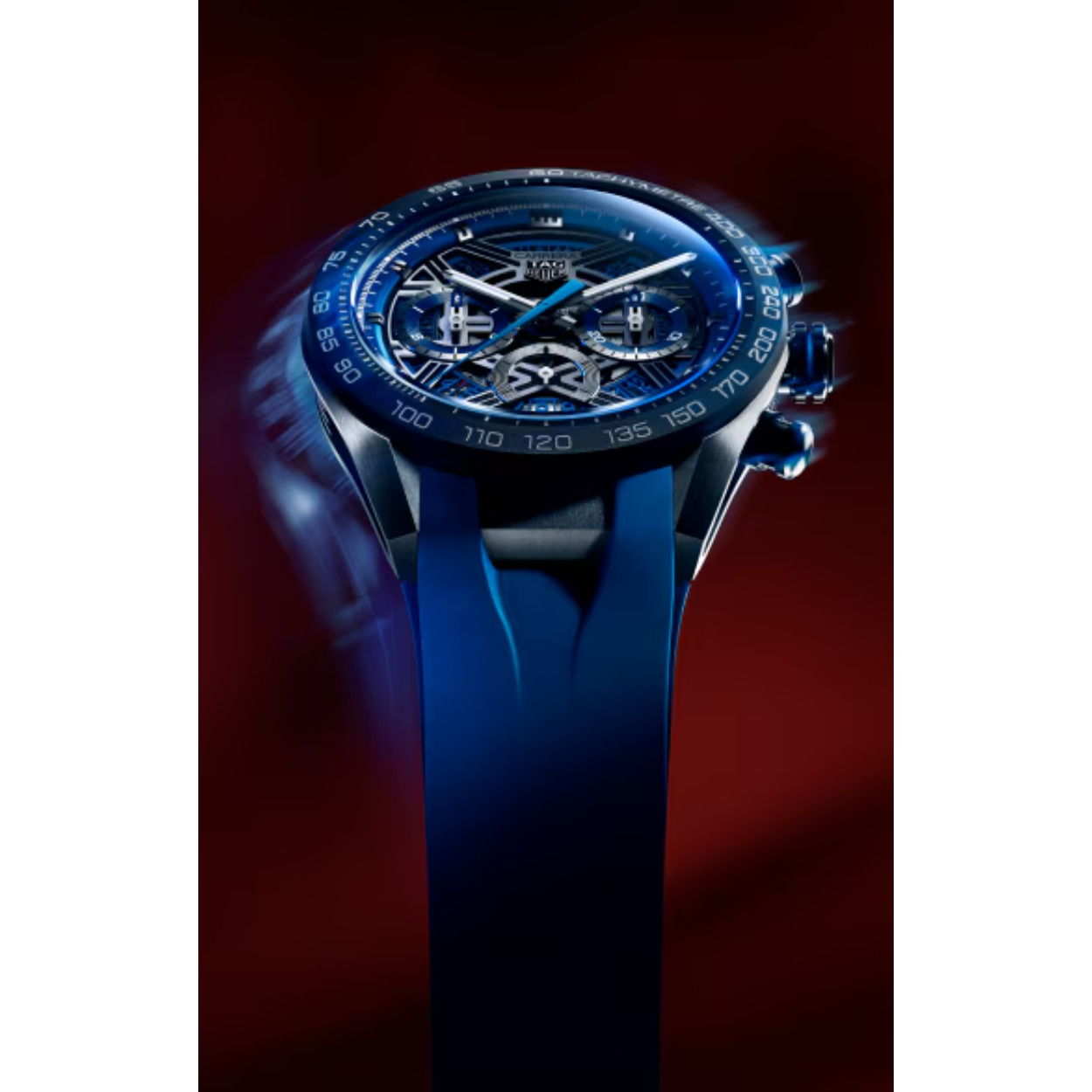Verbeter uw polsspel met de TAG Heuer Carrera Chronograph, een bewijs van de sensatie van de motorsport. Met zijn gedurfde ontwerp en blauwe accenten, vangt de skeletachtige wijzerplaat van dit horloge de essentie van snelheid en innovatie. Klaar om in stijl vooruit te razen.