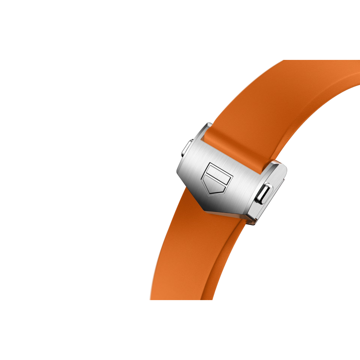 De toekomst is er al, en het ziet er rooskleurig uit met deze oranje rubberen band, gemaakt voor elk TAG Heuer Connected Calibre E4 horloge 42 mm. Deze veelzijdige en ergonomische optie, beveiligd met een stalen vouwsluiting, zal uw prestaties verrijken en u helpen uw grenzen te verleggen.