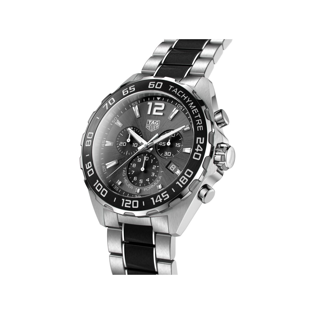 De TAG Heuer Formula 1 is voorzien van een Quartz Chronograph uurwerk en de kast is gemaakt van edelstaal. Het horloge heeft een diameter van 43 mm en is getest op een waterdichtheid van 20 ATM / 200 meter. De horlogeband is gemaakt van edelstaal.