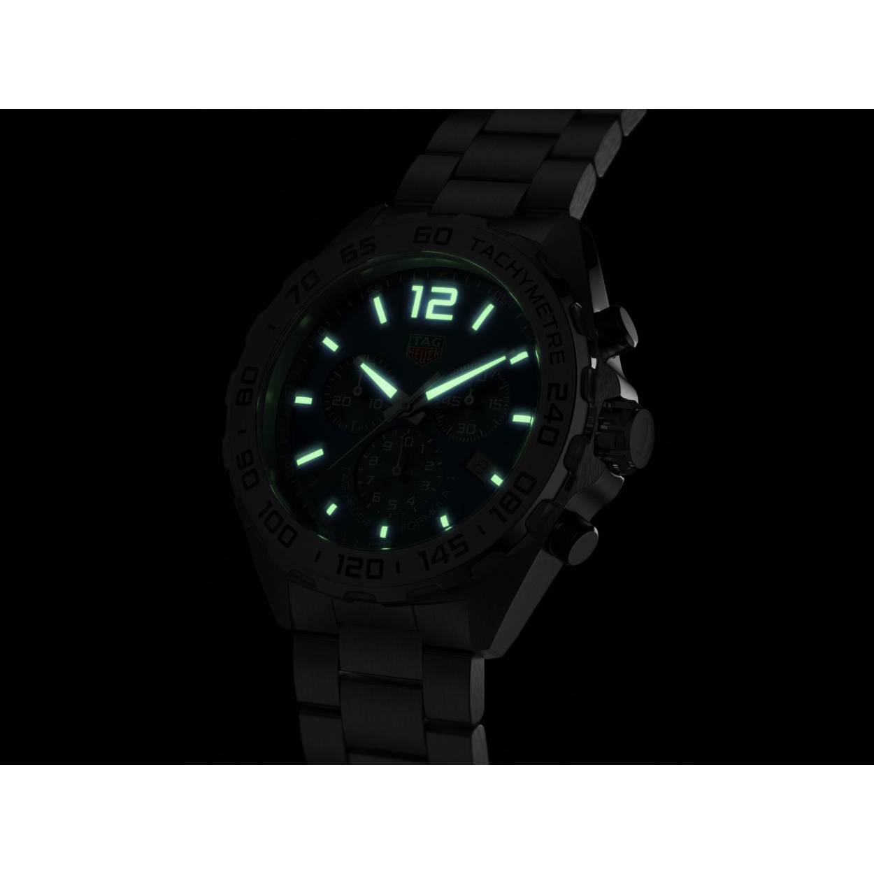 De TAG Heuer Formula 1 is voorzien van een Quartz uurwerk en de kast is gemaakt van edelstaal. Het horloge heeft een diameter van 43 mm en is getest op een waterdichtheid van 20 ATM / 200 meter. De horlogeband is gemaakt van edelstaal.