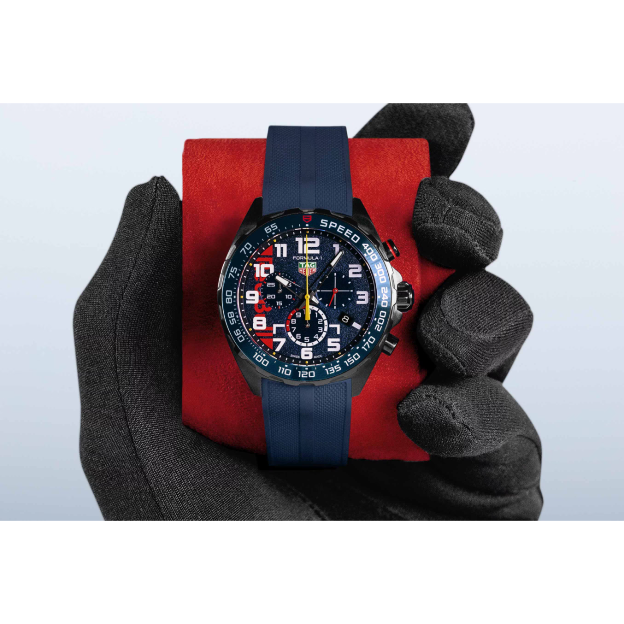 Dit TAG Heuer Formula 1 horloge is een Oracle Red Bull Racing 20th anniversary Limited Edition. Op de achterkant van ieder horloge is "one of 3000" gegraveerd.
