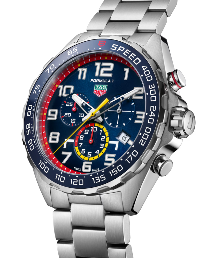 De TAG Heuer Formula 1 Red Bull Racing Special Edition is onderdeel van een unieke samenwerking en is klaar om vooruit te brullen en het tempo te bepalen. Deze dynamische chronograaf is een passend eerbetoon aan twee energieke leiders in hun vakgebied en een echte uitdager.