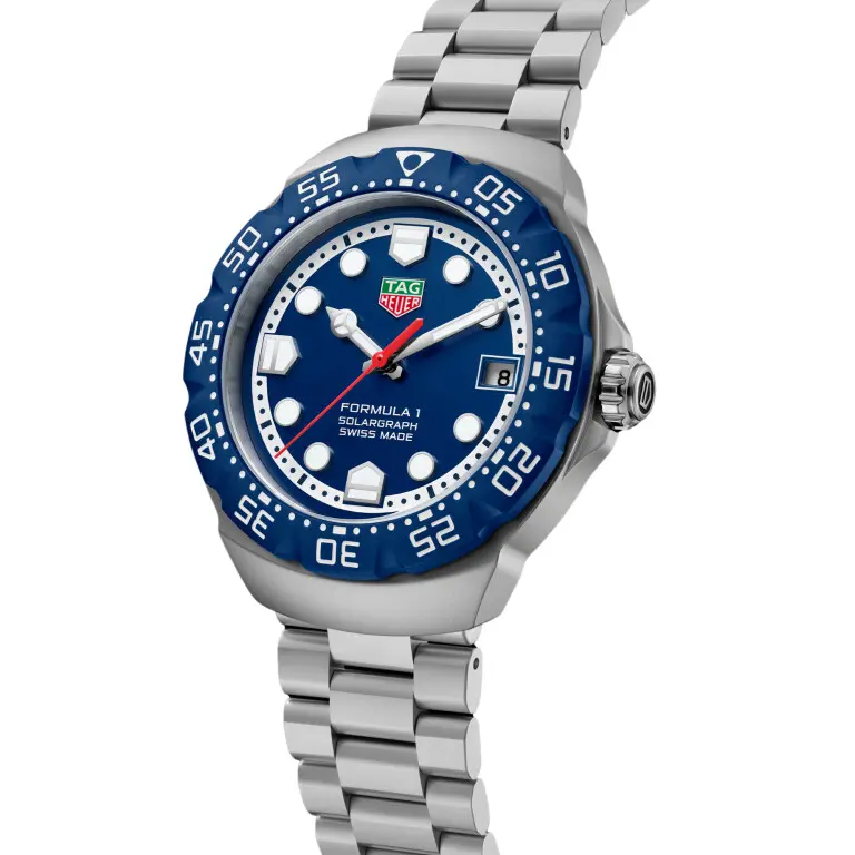Geïnspireerd door het originele Series 1 horloge, versterkt de TAG Heuer Formula 1 Solargraph in 38 mm de energieke esthetiek met een levendige blauwe wijzerplaat en een strak design. Dit op zonne-energie werkende horloge combineert een speelse stijl met functionaliteit en is gemaakt voor trendsetters die waarde hechten aan zowel stijl als innovatie.