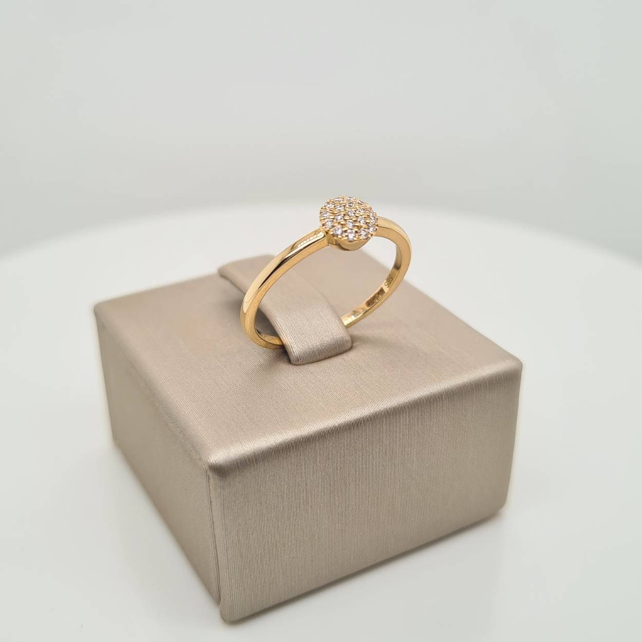 14k Geelgouden ring uitgevoerd met schitterende diamant. De ring heeft een breedte van 5.5mm. Het diamantgewicht is 0.09ct.