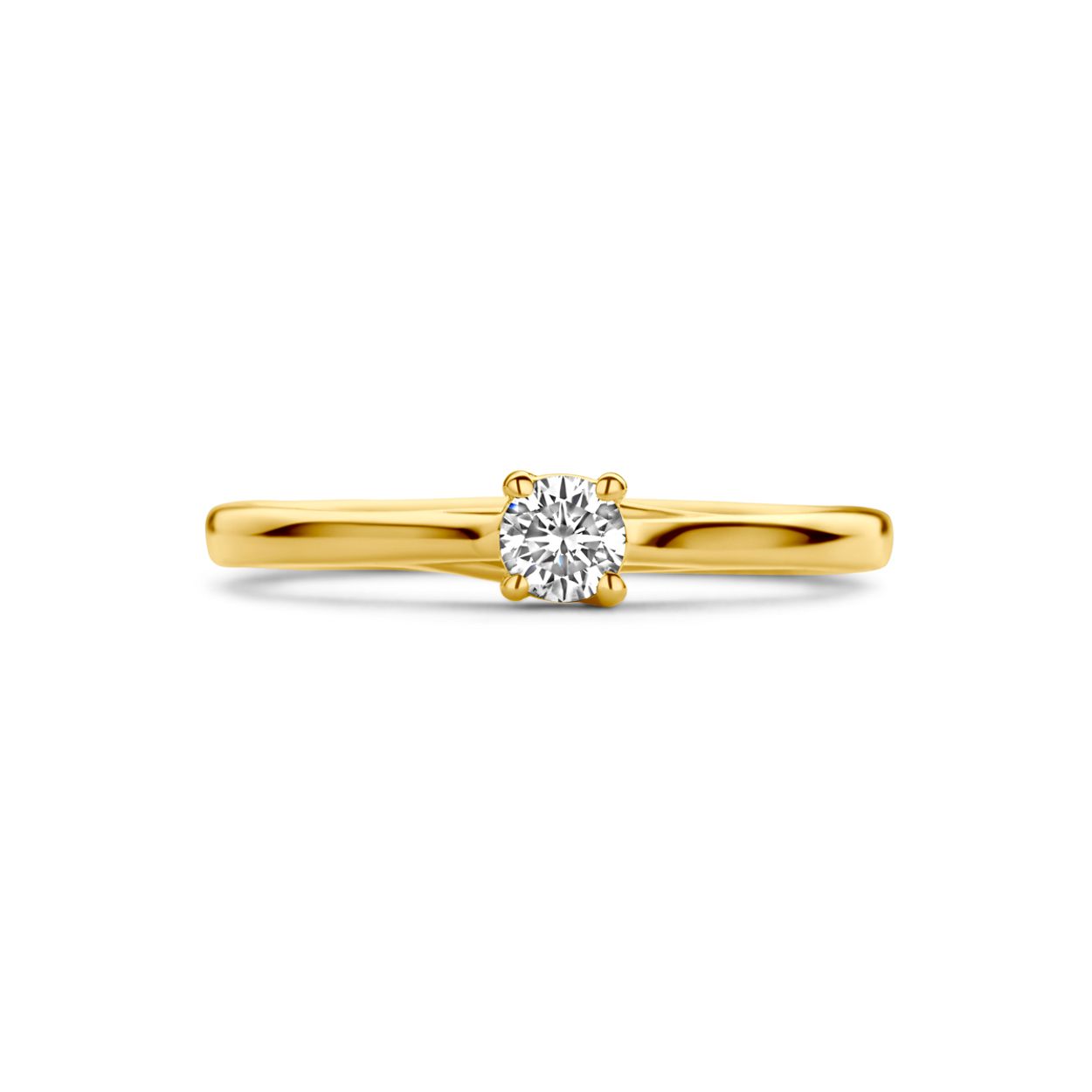 14krt geelgouden ring uitgevoerd met diamant. De ring heeft een breedte van 3.5mm.