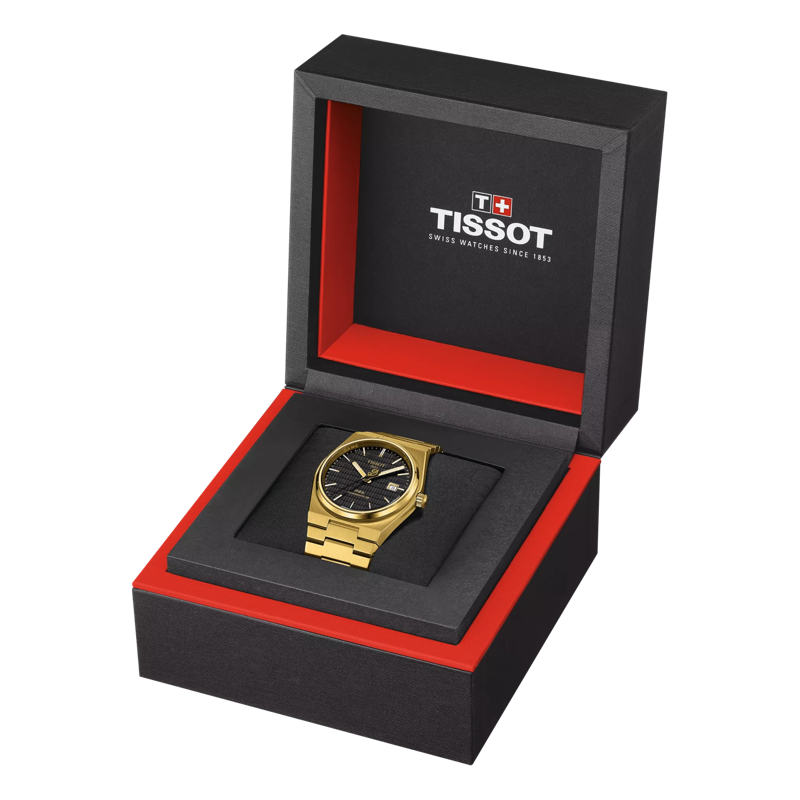 De Tissot is voorzien van een automatisch kaliber 11 1/2'" uurwerk met een gangreserve van 80 uur. De kast en band zijn gemaakt van roestvrijstaal met geelgouden PVD coating. Het horloge heeft een diameter van 40 mm en is getest op een waterdichtheid tot 10 atm / 100 m. De wijzers en indexen zijn voorzien van Super-LumiNova®️ waardoor de zwarte wijzerplaat ook in het donker goed af te lezen is. Het horloge heeft een krasvrij saffierglas met antireflecterende coating.