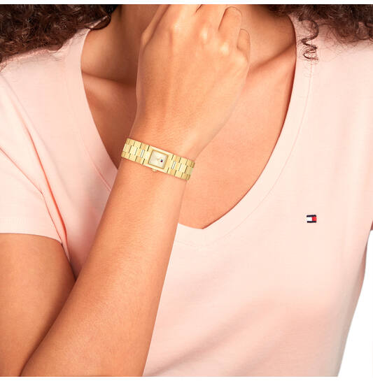 Dit elegante Tommy Hilfiger horloge straalt luxe uit. Het horloge heeft een goudkleurige stalen kast en band met een diameter van 25MM. Dit horloge is perfect te dragen bij elegante en formele gelegenheden. De gouden kleur en slanke band van 8 mm breed maken het horloge een perfect accessoire voor zakelijke of feestelijke outfits. Combineer het met uw favoriete sieraden voor een harmonieuze uitstraling, zodat u gegarandeerd een blijvende indruk maakt. Kiezen voor dit horloge betekent subtiele klasse aan uw look toevoegen.