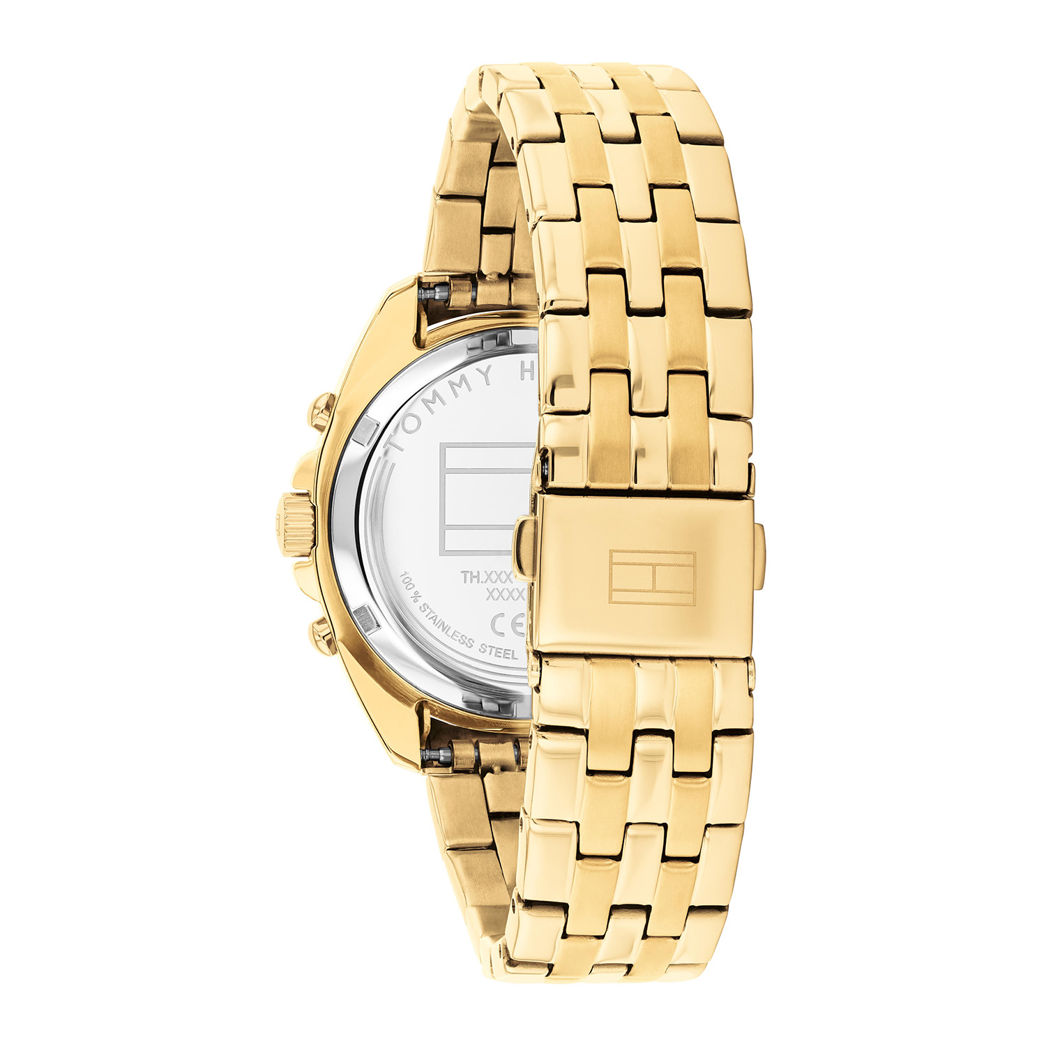 Dit specifieke horloge van Tommy Hilfiger uit de Mellie serie met artikelnr: TH1782803 is een casual dameshorloge die niet in je collectie mag ontbreken. Het stalen goudkleurige dameshorloge heeft een ronde kast met bezel vol kristallen en een goudkleurige sunray wijzerplaat. Op de wijzerplaat zit een dag, datum, 24-uursaanduiding, fijne wijzers en het Tommy logo. Aan de kast zit een stalen goudkleurige schakelband met een vouwsluiting. Het horloge heeft een mineraalglas, een afmeting van 36mm en is 3ATM.