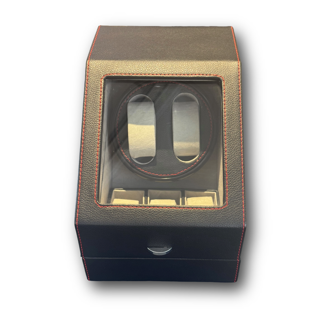 De watchwinder biedt ruimte om twee automatische horloges gelijktijdig op te winden, zodat ze altijd klaar zijn om te dragen. Onder de opwindmodules bevinden zich nog drie displayplaatsen, ideaal om je favoriete horloges zichtbaar én stofvrij te bewaren.
