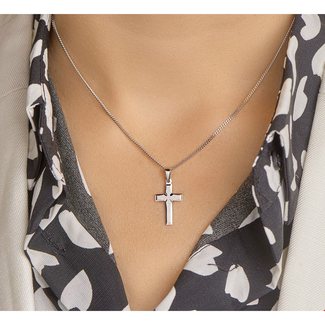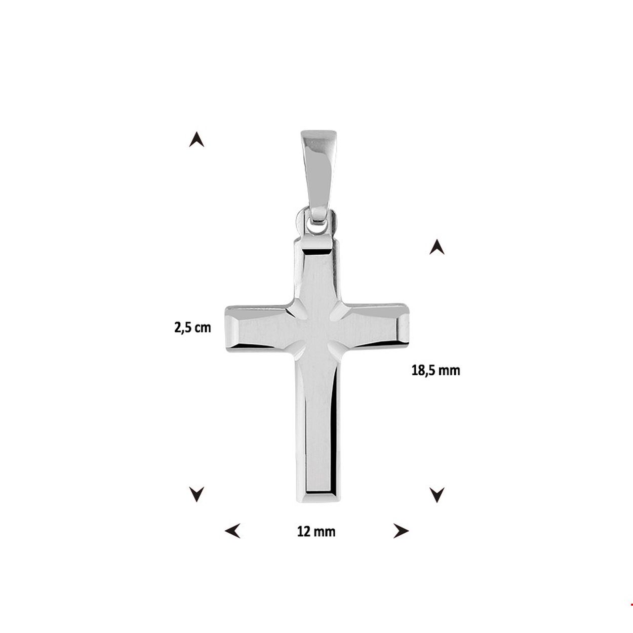 Gerhodineerd zilveren hanger in de vorm van een kruis. Het kruis heeft een afmeting van 18.5x12mm.