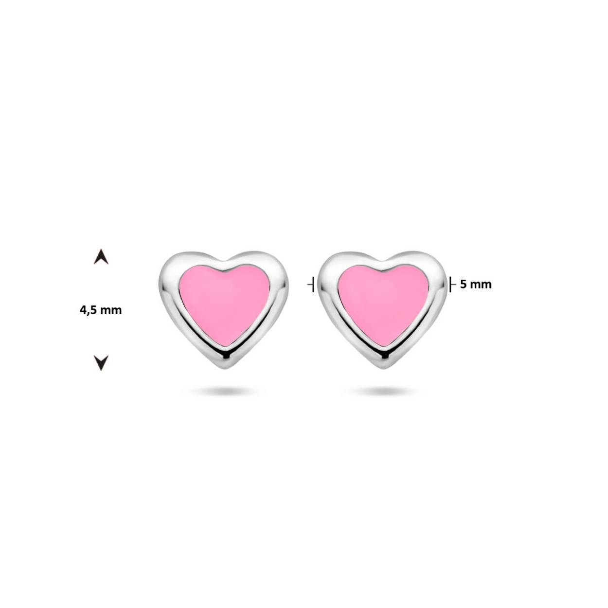 Zilveren oorsteker hart roze emaille 4.5x5mm