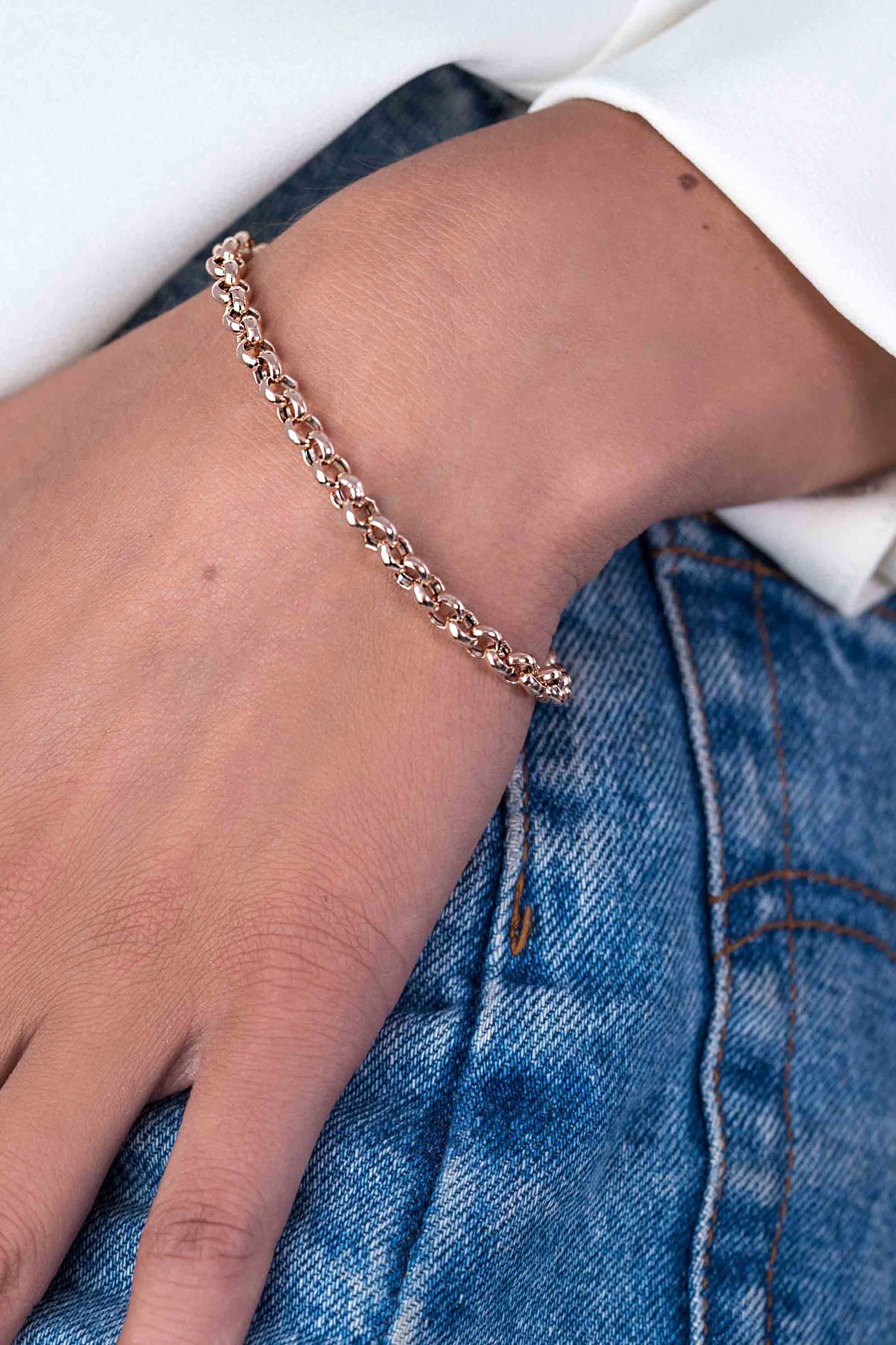 ZINZI CHAIN zilveren rosé vergulde jasseron armband in 5mm breedte op 21 cm lengte. Een tijdloze schakel en met iedere armband te combineren. Bij sluiting herkenbaar ZINZI, door het zilveren ZINZI hartje. Vervaardigd van eerste gehalte zilver (925) en met extra rodiumlaag voor een langdurige glans.