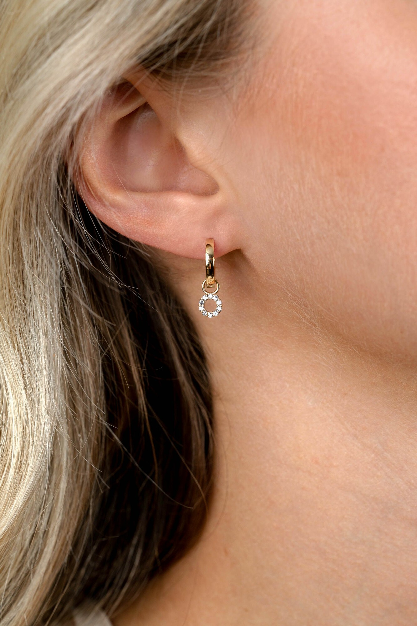 ZINZI Gold 14 karaat gouden oorbedels in open ronde vorm 6mm, rondom bezet met witte zirkonia's. Hang deze oorbedels sierlijk aan je gouden ZINZI oorringen. De oorringen zijn niet bij de prijs inbegrepen. Vervaardigd van geheel 14 karaat goud (585).