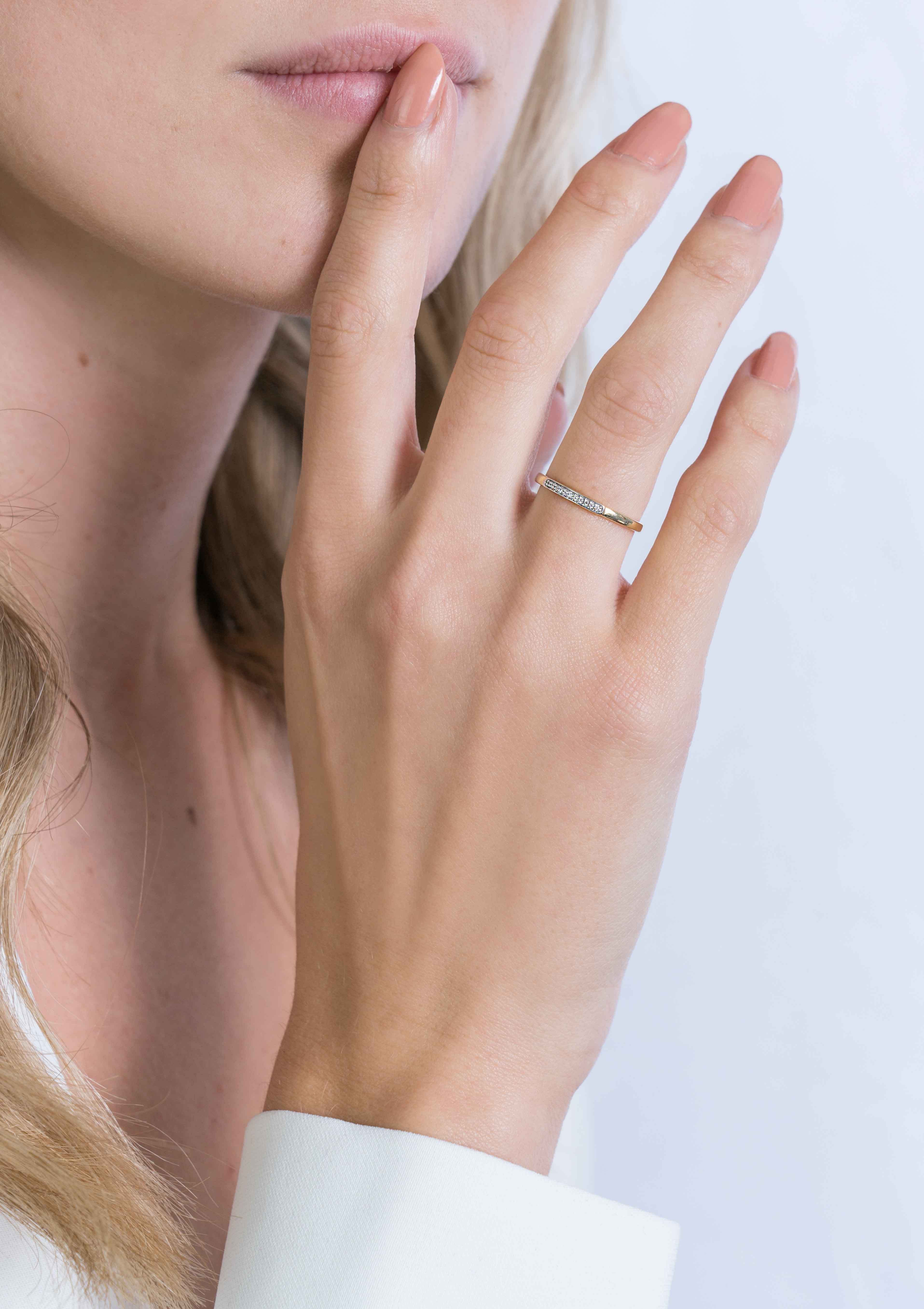 ZINZI Gold 14 karaat gouden gladde aanschuifring met bovenop een schitterende rijzetting bezet met elf witte zirconia's. Gemakkelijk te combineren met andere ZINZI Gold aanschuifringen. Vervaardigd van geheel 14 karaat goud (585