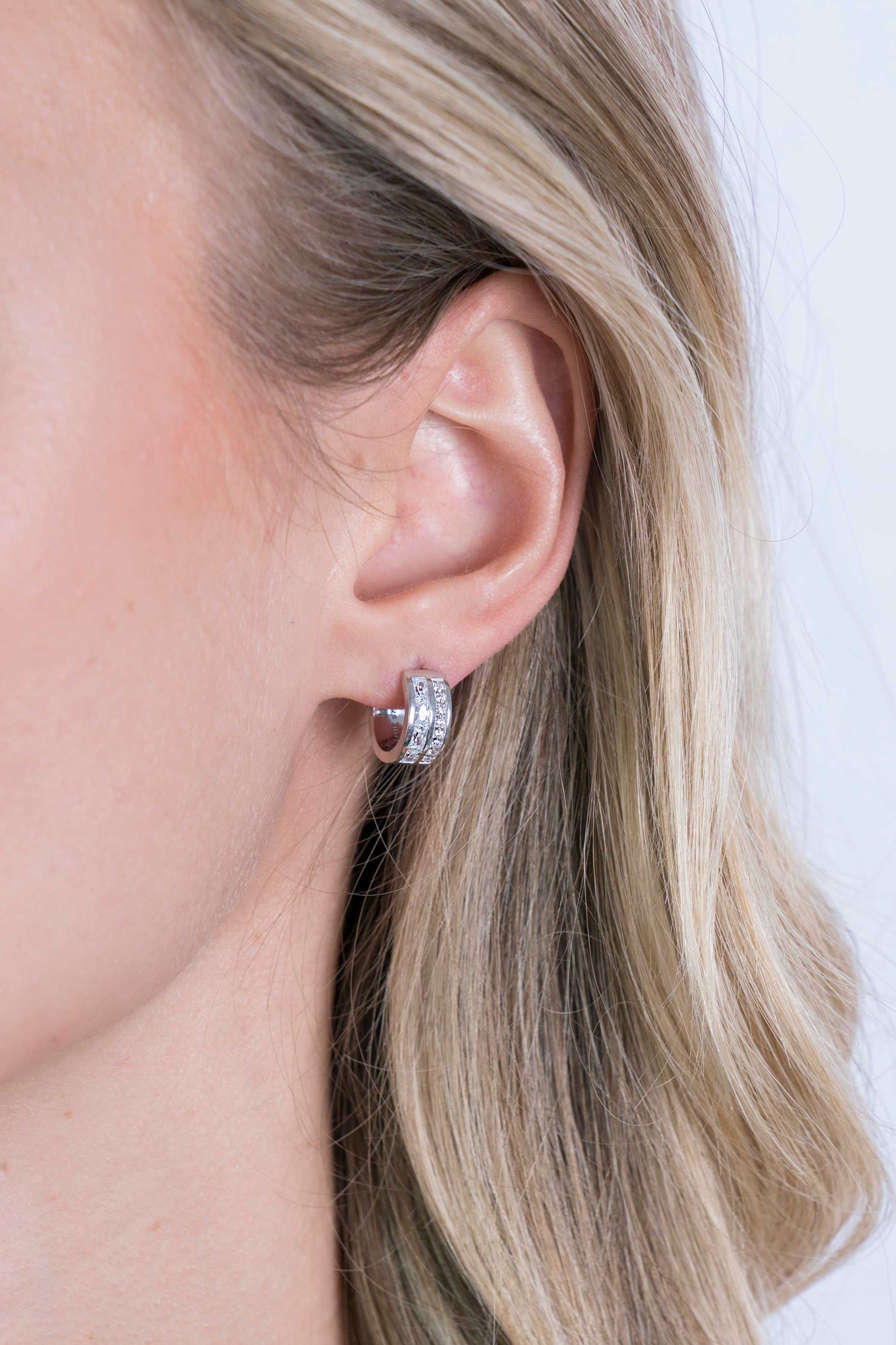 ZINZI zilveren luxe oorringen (12,5x6mm) met twee banen schitterend bezet met verschillende witte zirconia's. Deze oorringen zijn stoer én chique en laten zich gemakkelijk combineren met andere sieraden! Vervaardigd van eerste gehalte zilver (925) en voorzien van een extra rodiumlaag voor een langdurige glans.