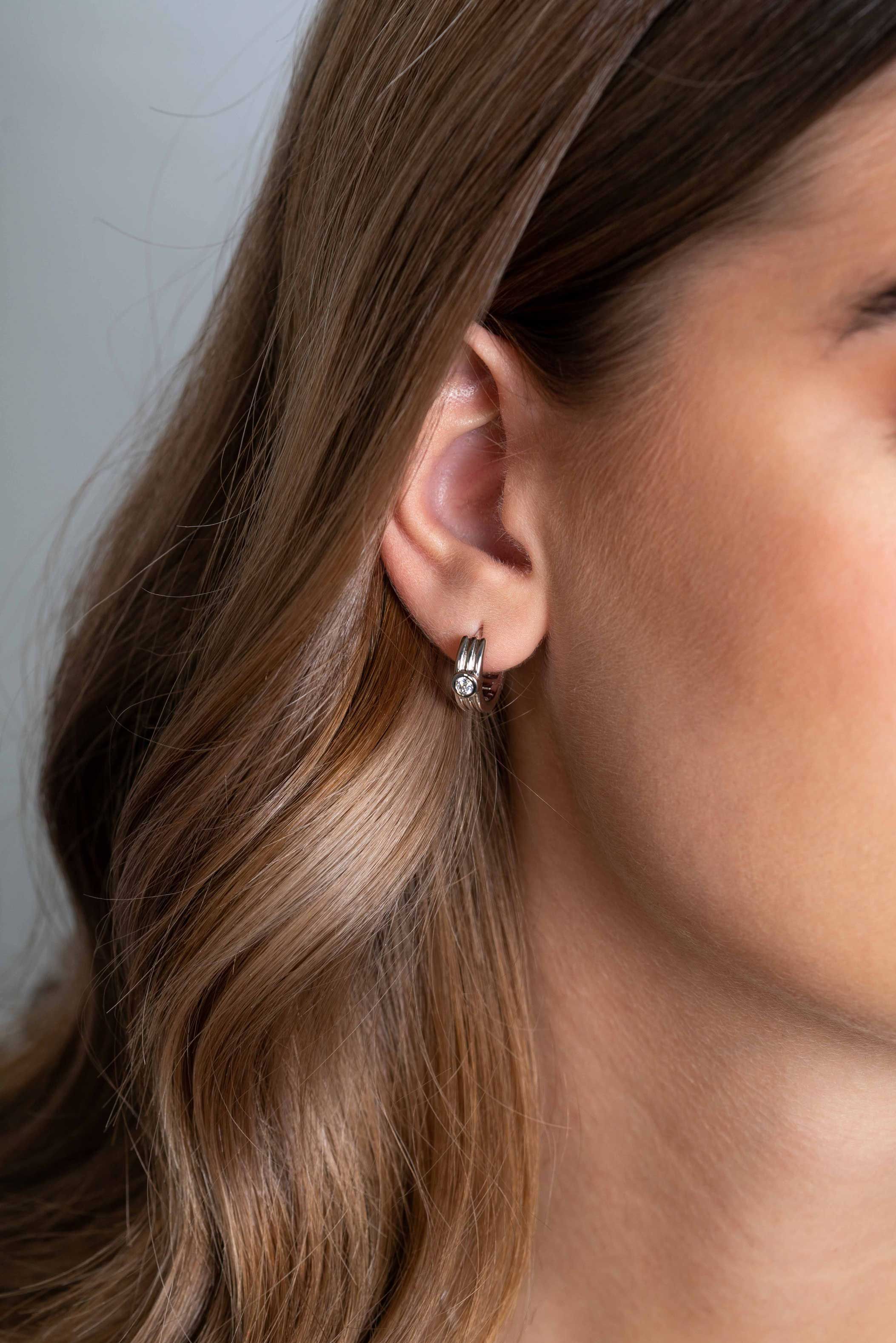 ZINZI zilveren oorringen met drie gladde banen en in het midden bezet met één ronde witte zirconia. De oorringen zijn 15x4mm. Met luxe scharniersluiting. Maak je look compleet met de bijpassende hanger en ring! Vervaardigd van eerste gehalte zilver (925) en voorzien van een extra rodiumlaag voor een langdurige glans.