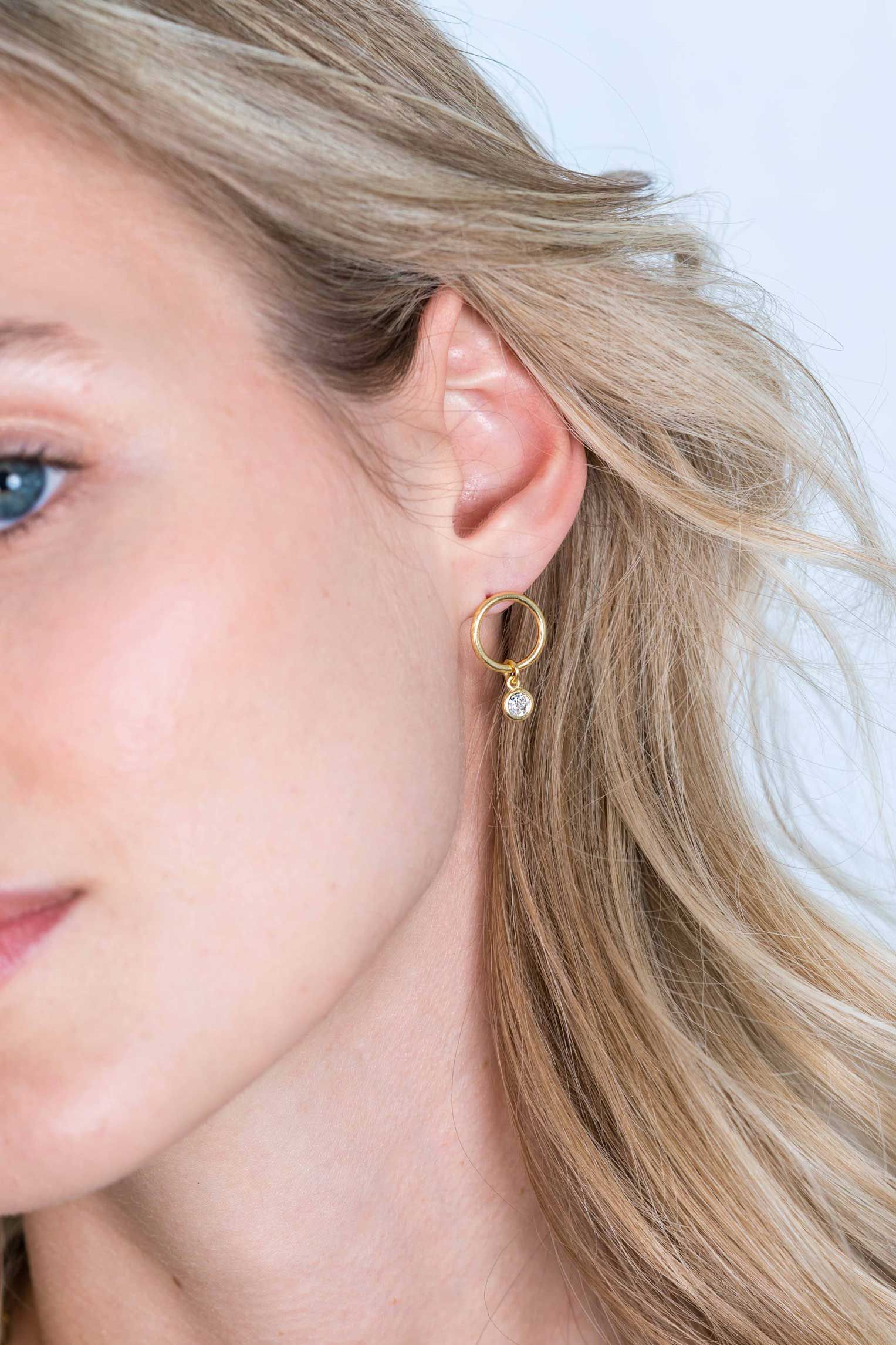 ZINZI zilveren oorstekers 14K geel verguld 13mm ronde hanger witte zirconia ZIO2200Y