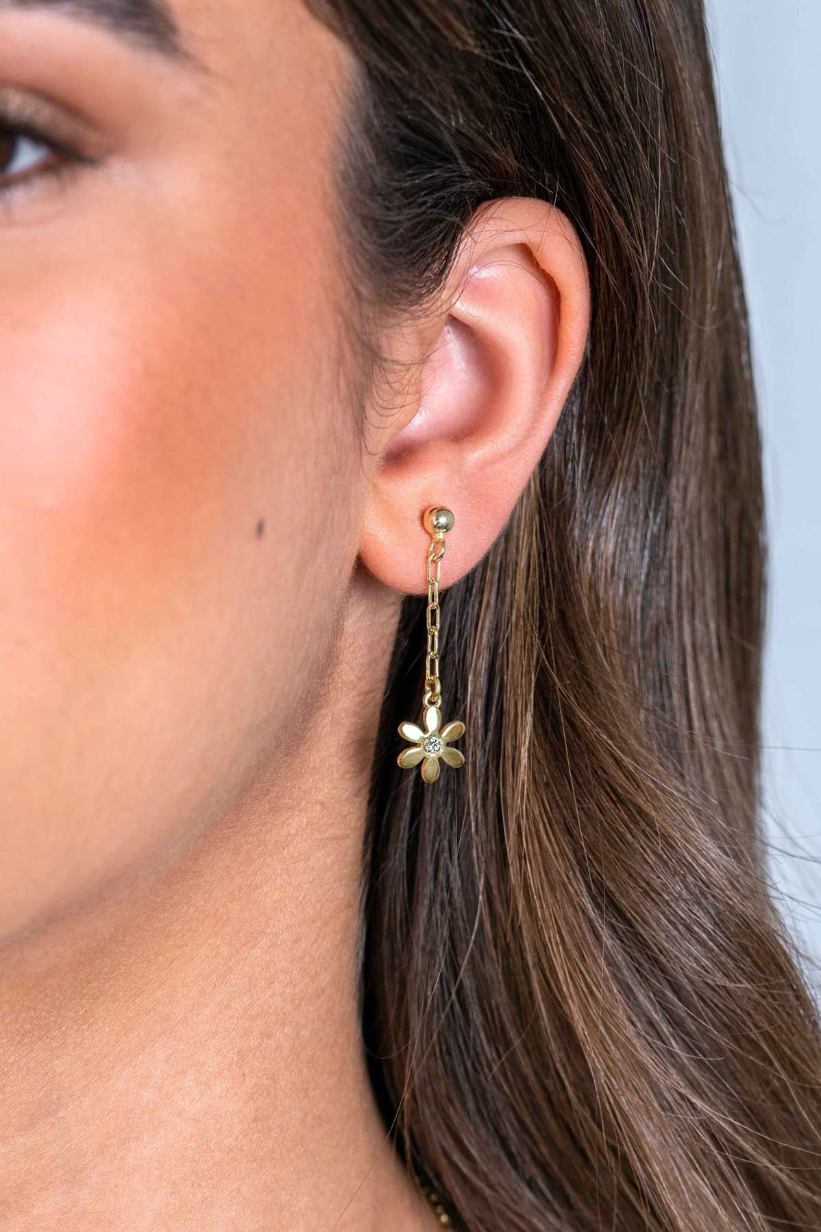 ZINZI gold plated zilveren oorstekers 34mm lang, met paperclip schakels en sierlijke bloem (9mm). De bloem is bezet met drie kleine witte zirconia's. De breedte van de paperclip schakel is 2mm. Vervaardigd van eerste gehalte zilver (925) en met extra 14K geel vergulding.