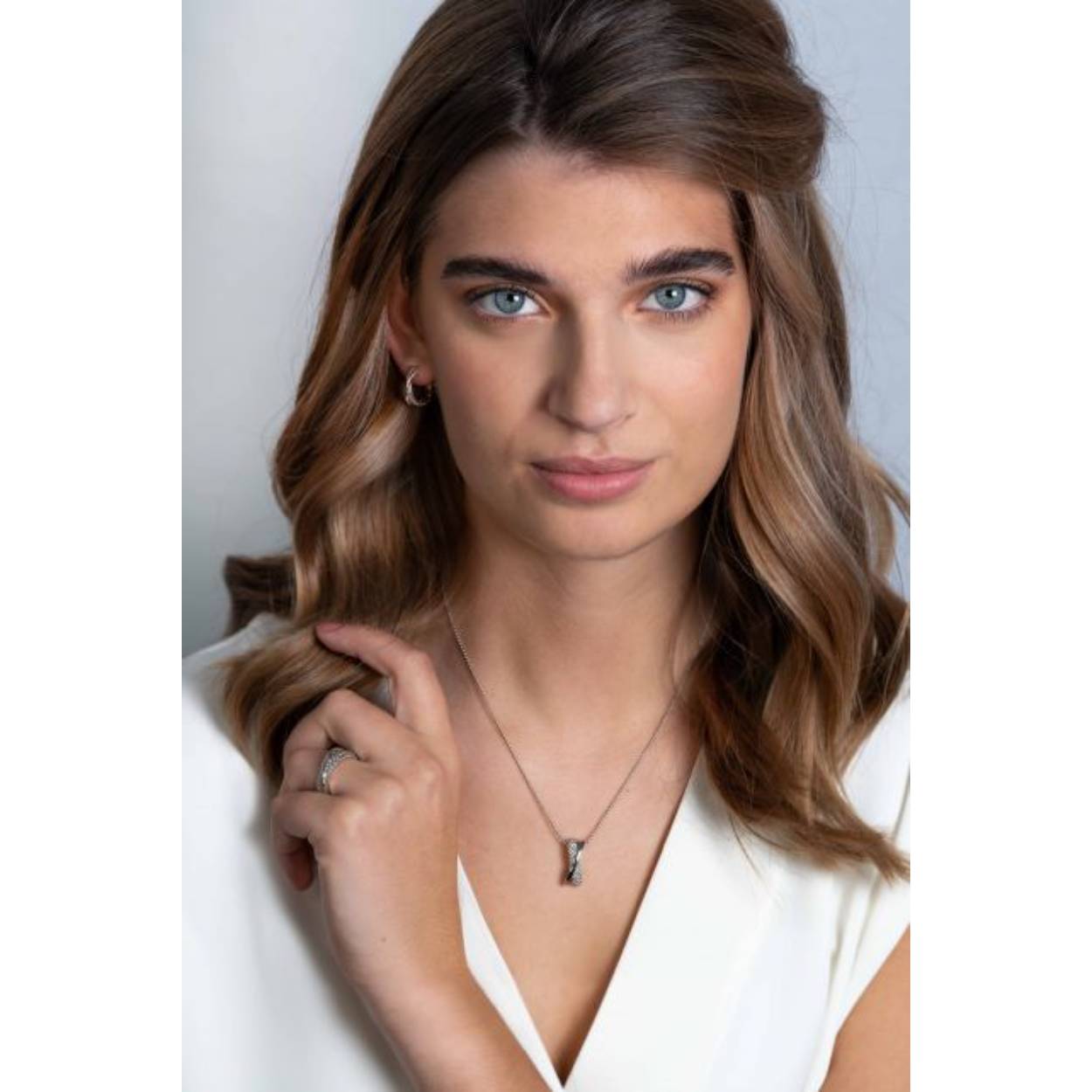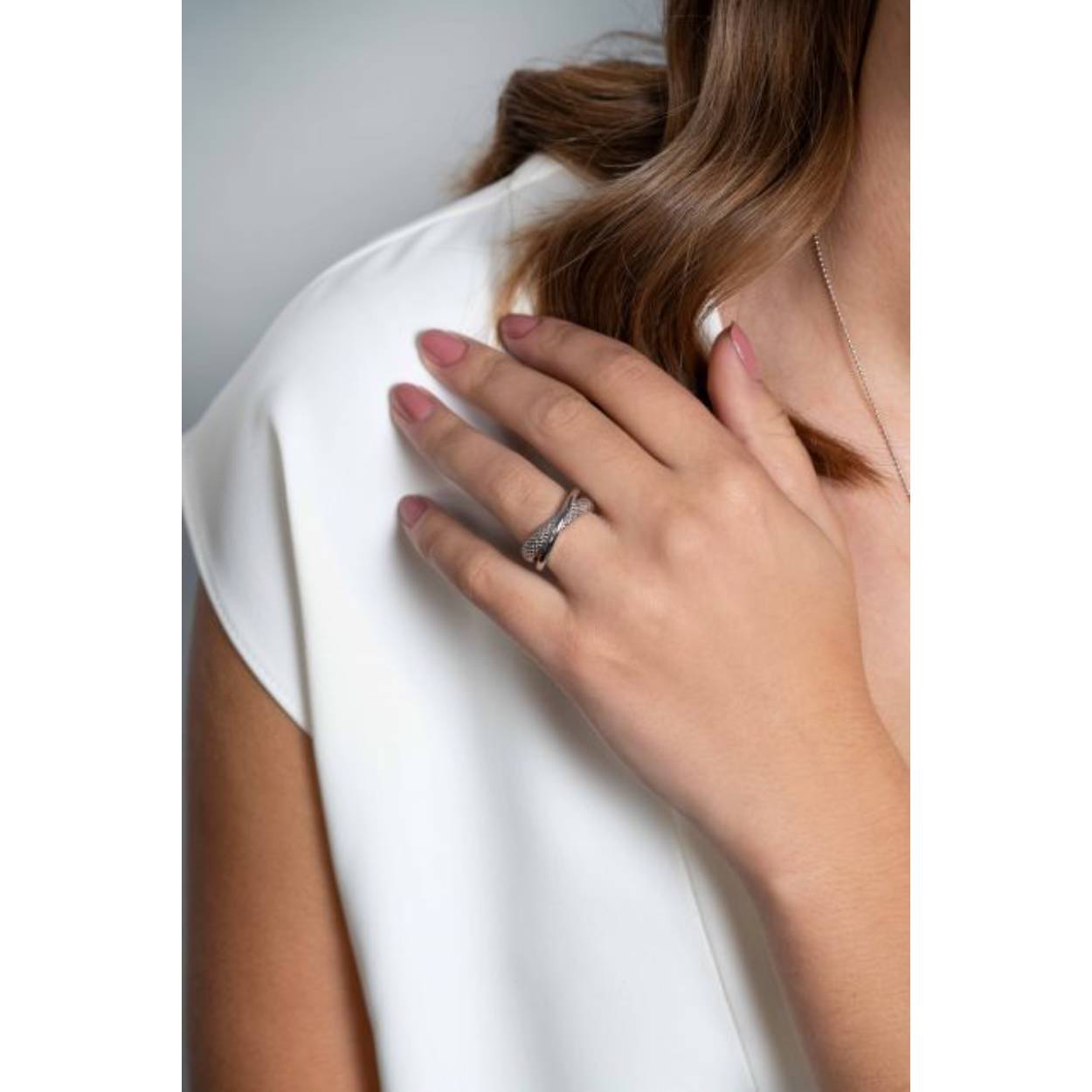 ZINZI zilveren cross-over ring, waarbij een brede baan met bolletjespatroon wordt gekruist door een smallere gladde baan. Maak je look compleet met de bijpassende hanger en oorsieraden! Vervaardigd van eerste gehalte zilver (925) en voorzien van een extra rodiumlaag voor een langdurige glans.
