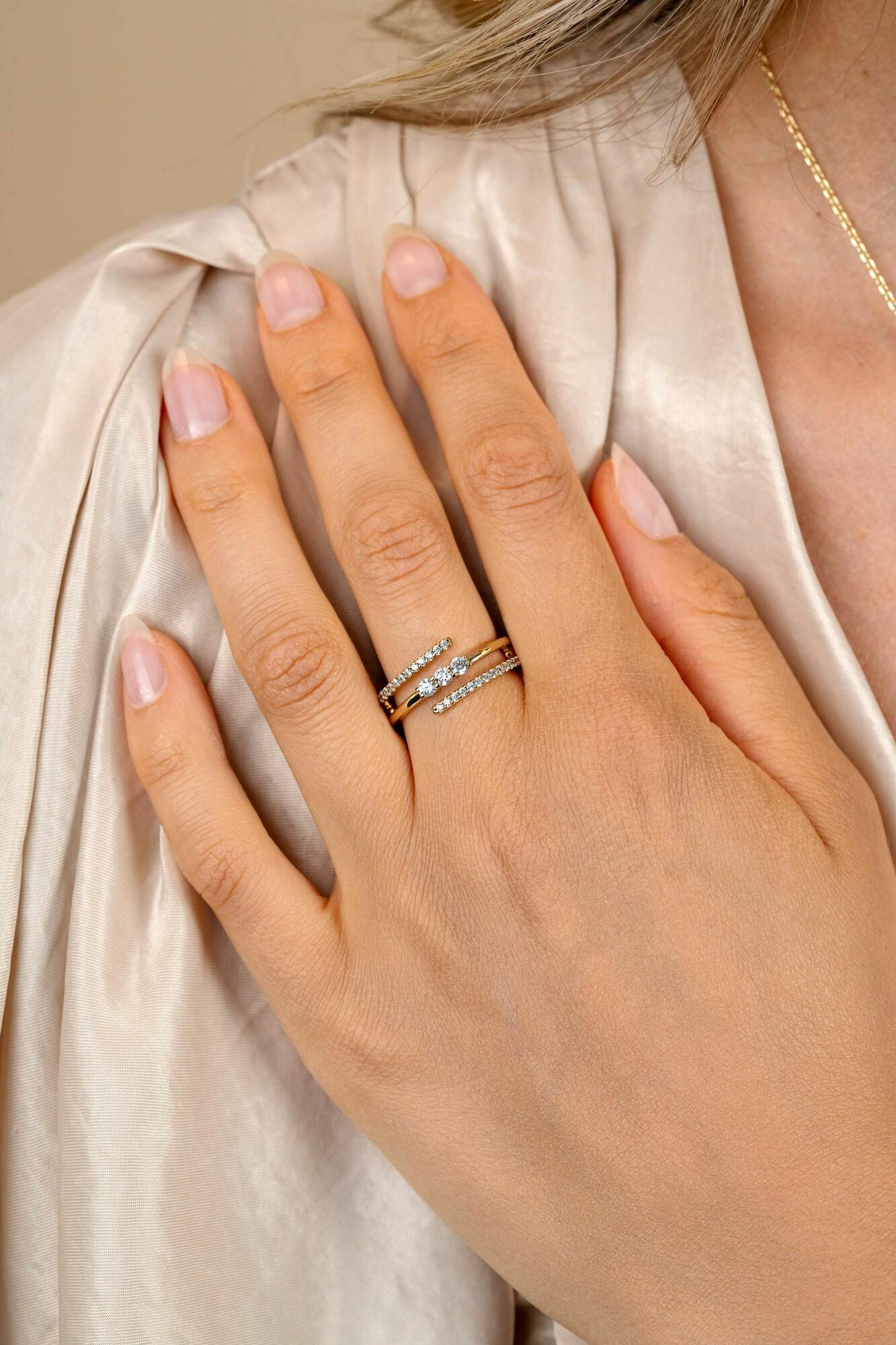 ZINZI gold plated zilveren multi-look ring (8mm breed) met 3 rijen. De middelste rij is opvallend bezet met grotere witte zirconia's. Maak je look compleet met de bijpassende oorringen! Vervaardigd van eerste gehalte zilver (925) en extra geel verguld.